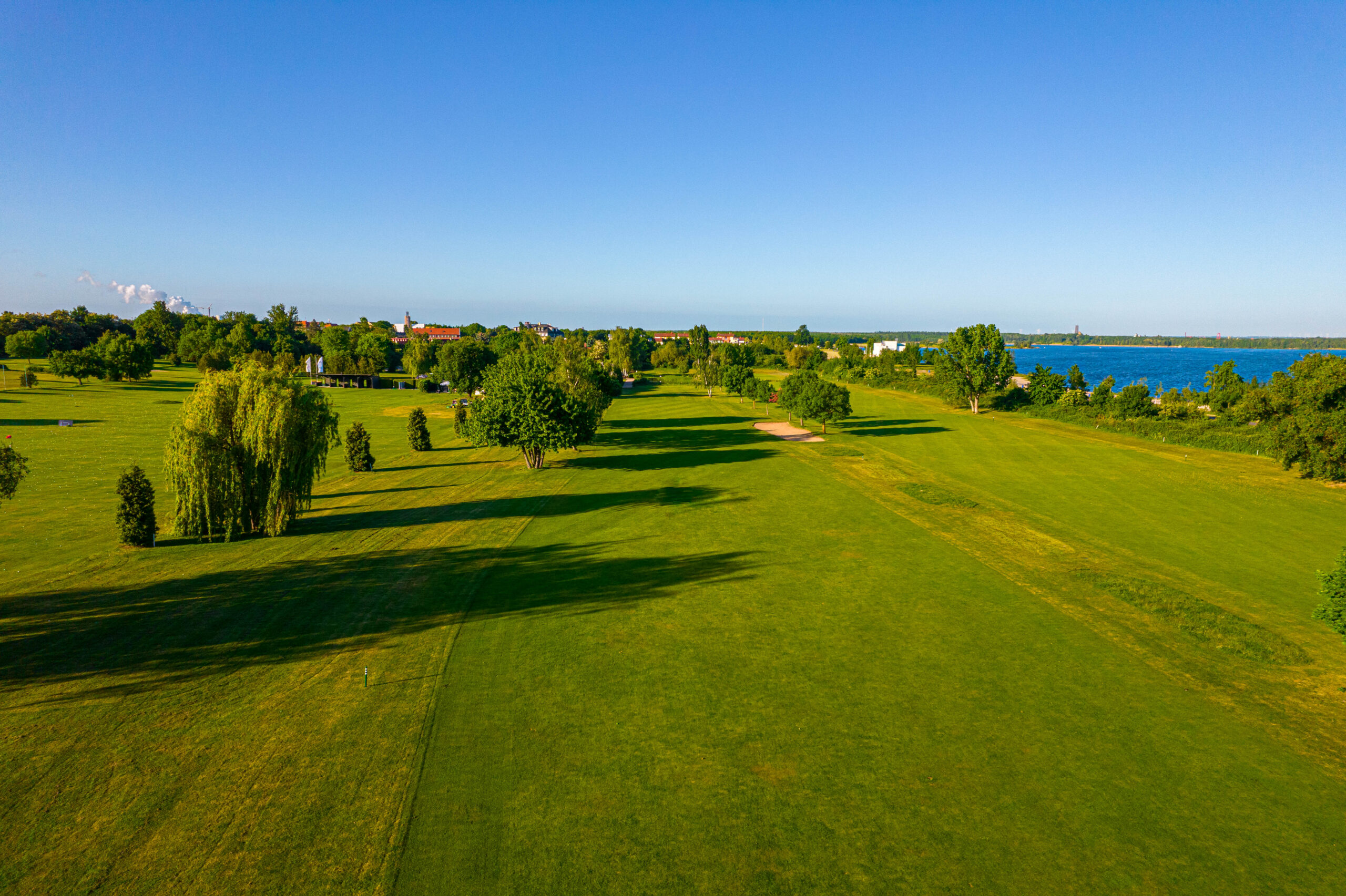 Der Golfplatz befindet sich in einer ruhigen Naturlandschaft südlich von Leipzig, direkt am Cospudener See, der durch die Rekultivierung eines ehemaligen Braunkohletagebaus entstanden ist. Die Spieler finden hier also nicht nur sportliche Betätigung, sondern auch schöne Ausblicke auf den See und die umliegende Landschaft. Hier verbinden sich Geschichte und moderne Freizeitgestaltung.